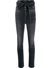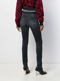 high-waist skinny jeans Black cotton blend high-waist skinny jeans from Unravel featuring a high waist, a skinny fit, a five pocket design and a button fastening. Made in Italy Composition Outer: Cotton 92%, Polyester 6%, Spandex/Elastane 2% Lining: Polyester 65%, Cotton 35% SIZE & FIT Model measurements Height 5 ft 11 in(1.8 m) Bust/Chest 31.49 in(80 cm) Hips 35.82 in(91 cm) Waist 24.8 in(63 cm) FittingInformation This piece fits true to size. We recommend you get your regular size Cut for a slim fit Made with a mid-weight stretch fabric Washing instructions Hand Wash