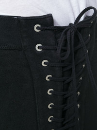 lace-up skinny sweatpants Black cotton blend lace-up skinny sweatpants from Unravel. Made in Italy Composition Outer: Cotton 95%, Spandex/Elastane 5% SIZE & FIT Model measurements Height 5 ft 10 in(1.78 m) Bust/Chest 33.46 in(85 cm) Hips 36.22 in(92 cm) Waist 23.22 in(59 cm) Washing instructions Machine Wash