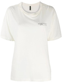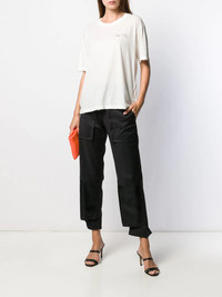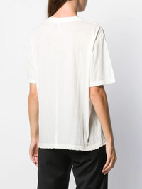 logo T-shirt White cotton logo T-shirt from Unravel featuring a round neck, distressed effects, short sleeves, a loose fit and a straight hem. Made in Italy Composition Cotton 100% SIZE & FIT Model measurements Height 5 ft 10 in(1.78 m) Bust/Chest 33.46 in(85 cm) Hips 36.22 in(92 cm) Waist 23.22 in(59 cm) FittingInformation This piece fits true to size. We recommend you get your regular size Cut for a relaxed fit Washing instructions Hand Wash