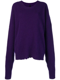 oversized distressed crew-neck sweater Purple wool oversized distressed crew-neck sweater from Unravel. Made in Italy Composition Wool 70%, Cashmere 30% SIZE & FIT Model measurements Height 5 ft 10 in(1.77 m) Bust/Chest 35.03 in(89 cm) Hips 36.22 in(92 cm) Waist 25.98 in(66 cm) Washing instructions Hand Wash