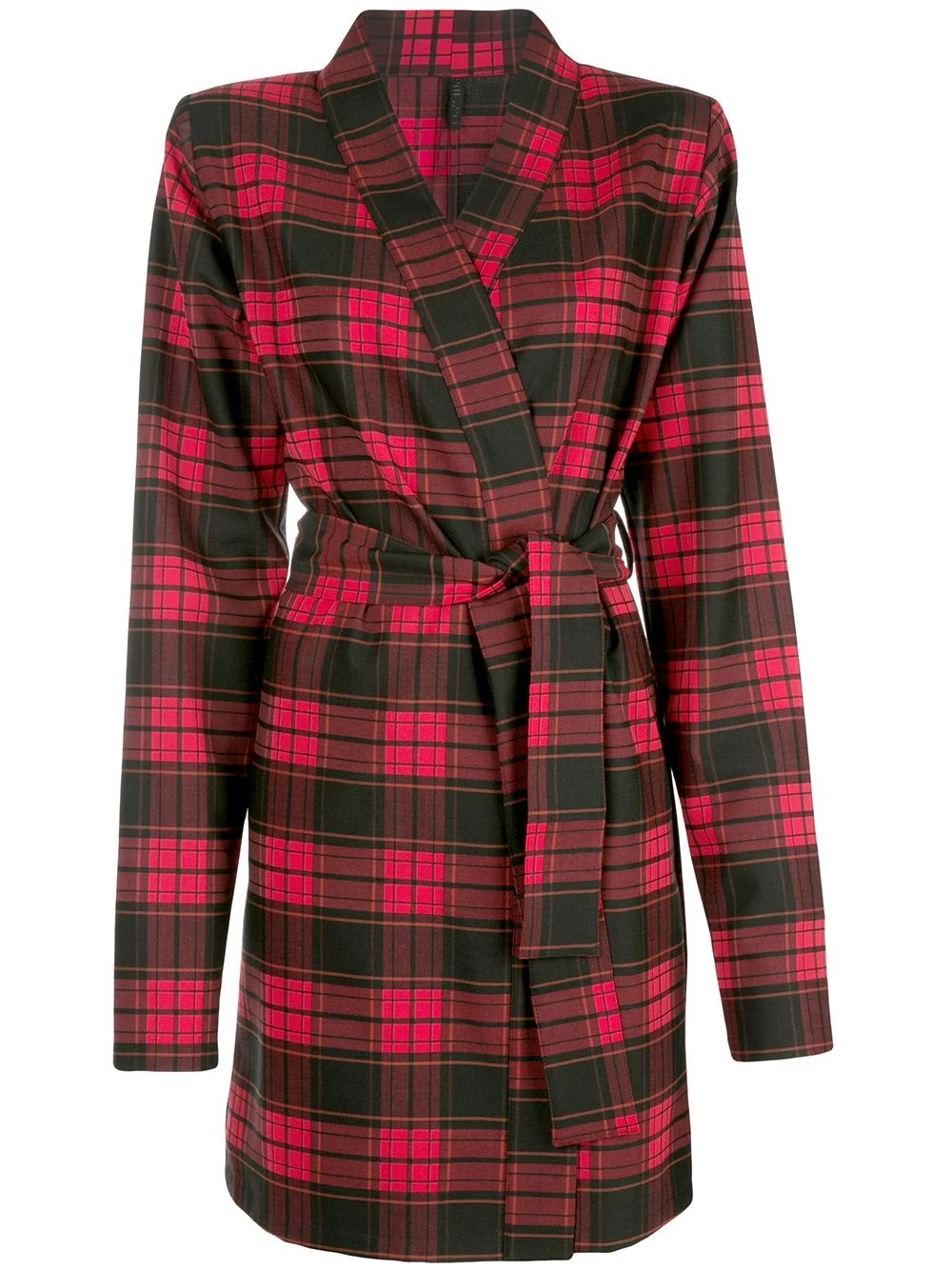 plaid belted coat Lipstick red and black virgin wool plaid belted coat from Unravel featuring structured shoulders, long sleeves, a belted waist, a long length and a straight hem. Made in Italy Composition Polyester 53%, Virgin Wool 43%, Spandex/Elastane 4% SIZE & FIT Model measurements Height 5 ft 10 in(1.79 m) Bust/Chest 31.1 in(79 cm) Hips 33.85 in(86 cm) Waist 22.83 in(58 cm) Washing instructions Dry Clean Only