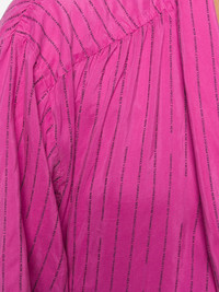 striped pussy bow blouse Fuschia pink silk striped pussy bow blouse from Unravel. Made in Italy Composition Silk 100% SIZE & FIT Model measurements Height 5 ft 10 in(1.79 m) Bust/Chest 33.07 in(84 cm) Hips 35.82 in(91 cm) Waist 24.8 in(63 cm) Washing instructions Dry Clean Only