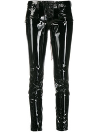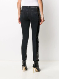 two-tone slim-fit trousers Thinking about going out with your girls tonight? Say no more! Designed in leather to the front, these black cotton blend two-tone slim-fit trousers from Unravel Project will make you shine all night. Go, go, go. Highlights - Black - Cotton blend - Low-rise - Belt loops - Front lace-up fastening - Classic five pockets - Front zip fastening pockets - Slim fit Made in Italy Composition Outer: Cotton 76%, Polyester 22%, Spandex/Elastane 2% Lining: Polyester 65%, Cotton 35% SIZE & FIT Model measurements Height 5 ft 10 in(1.78 m) Bust/Chest 33.07 in(84 cm) Hips 35.82 in(91 cm) Waist 25.98 in(66 cm) FittingInformation This piece fits true to size. We recommend you get your regular size Cut for a slim fit Made with a mid-weight stretch fabric Washing instructions Dry Clean Only