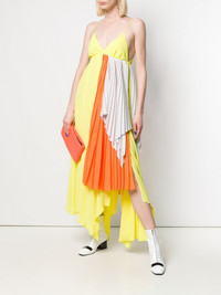 pleated draped dress Yellow silk blend pleated draped dress from Unravel featuring spaghetti straps, a triangle style, a raw uneven hemline and a long length. Made in Italy Composition Polyester 100%, Acetate 76%, Silk 24% SIZE & FIT Model measurements Height 5 ft 10 in(1.79 m) Bust/Chest 32.28 in(82 cm) Hips 35.03 in(89 cm) Waist 23.62 in(60 cm) FittingInformation This piece fits true to size. We recommend you get your regular size Designed for a close fit at the bust and waist, but loose at the hip Made with a lightweight fabric Washing instructions Dry Clean Only