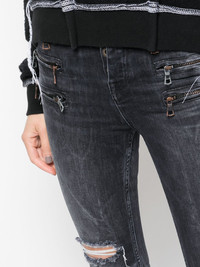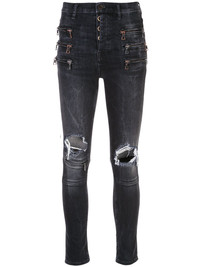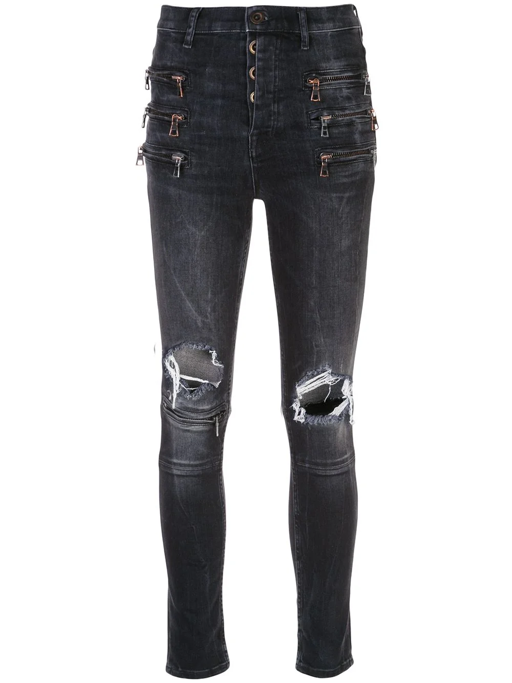 zipped knee holes skinny jeans Faded denim black stretch cotton zipped knee holes skinny jeans from Unravel featuring a high waist, a button fly fastening and side zipped pockets. Made in Italy Composition Cotton 92%, Elastane 8% SIZE & FIT Model measurements Height 5 ft 10 in(1.77 m) Bust/Chest 33.85 in(86 cm) Hips 35.03 in(89 cm) Waist 24.01 in(61 cm) Washing instructions Dry Clean Only