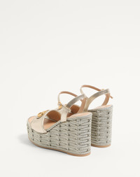 Valentino Garavani wedge sandal in laminated elk-print calfskin with VLogo Signature decoration - Leather patch with VLogo Signature accessory in antique brass effect finish - Adjustable ankle strap - Rope base and rubber sole - Heel height: 120 mm/4.7 in. with 45 mm/1.8 in. platform - Made in Spain Product code: 6W0S0LY9RPT_R16