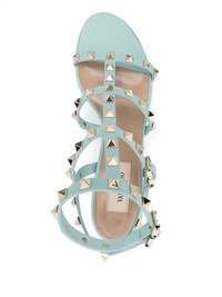 60mm Rockstud sandals Highlights - Baby blue - Buckle-fastening ankle strap - Mid block heel - Caged design - Almond open toe Made in Italy Composition Outer: Calf Leather 100%, Metal 100% Lining: Calf Leather 100% Sole: Calf Leather 100% SIZE & FIT Measurement HEEL 2.75 in(7 cm)