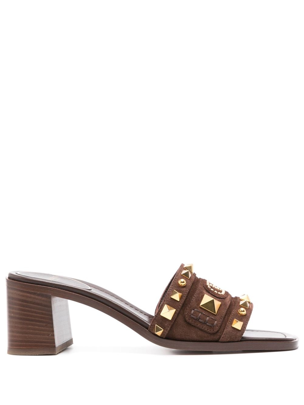 60mm VLogo Signature sandals Highlights - Chocolate brown - Square open toe - Branded leather insole - Mid block heel - Gold-tone rockstud embellishment Made in Italy Composition Outer: Calf Suede 100% Sole: Calf Leather 100%, Rubber 100% Lining: Calf Leather 100% SIZE & FIT Measurement HEEL 2.36 in(6 cm)