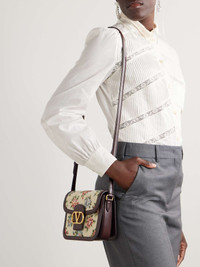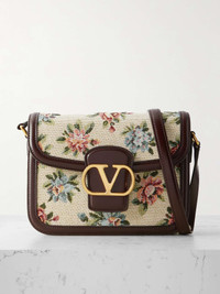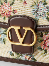 EDITORS'NOTES Valentino Garavani's practical shoulder bag may be named '9to5', but I'll also work overtime at the weekend. Crafted in Italy from canvas-jacquard, it has a rectangular shape reinforced with leather trims and gold-tone 'VLogo' hardware on the front flap. The compartmented interior holds enough space for your phone, cardholder, keys and a few cosmetics. SIZE & FIT This item’s measurements are: - Height: 14cm / 5.5in - Width: 19cm / 7.5in - Depth: 5cm / 2in DETAILS & CARE - Brown leather, multicolored canvas-jacquard - Adjustable shoulder strap - Internal snap-fastening pocket - Leather lining - Magnetic-fastening front flap