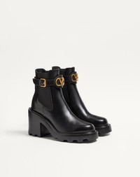Valentino Garavani VLogo Signature calfskin beatle boot - Leather patch with VLogo Signature accessory in antique brass-effect finish - Adjustable strap with buckle - Rubber lug sole - Heel height: 90 mm / 3.5 in. with 25 mm / 1 in. platform - Boot shaft height: 16 cm / 6.3 in. in an Italian size 37 - Made in Italy Product code: 7W2S0KY9BEK_0NO