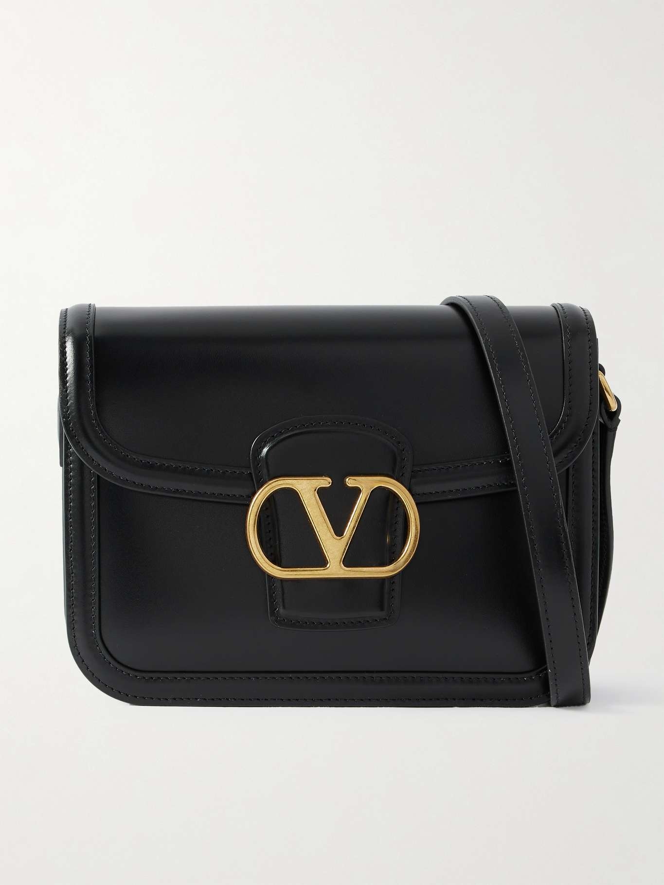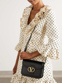 EDITORS'NOTES Valentino Garavani's '9to5' bag has a sleek, structured shape with dual compartments inside to easily organize your phone, keys, wallet and small tablet. It's made from smooth leather and adorned with the house's signature logo plaque in burnished gold-tone metal at the front. Adjust the shoulder strap to find your preferred drop. SIZE & FIT This item’s measurements are: - Min. Strap Length: 103cm / 40.6in - Depth: 4cm / 1.6in - Max. Strap Length: 109cm / 42.9in - Height: 15cm / 5.9in - Width: 21cm / 8.3in DETAILS & CARE - Black leather (Calf) - Adjustable shoulder strap - Internal snap pocket, two compartments - Unlined - Magnetic fastening front flap - Comes with a dust bag