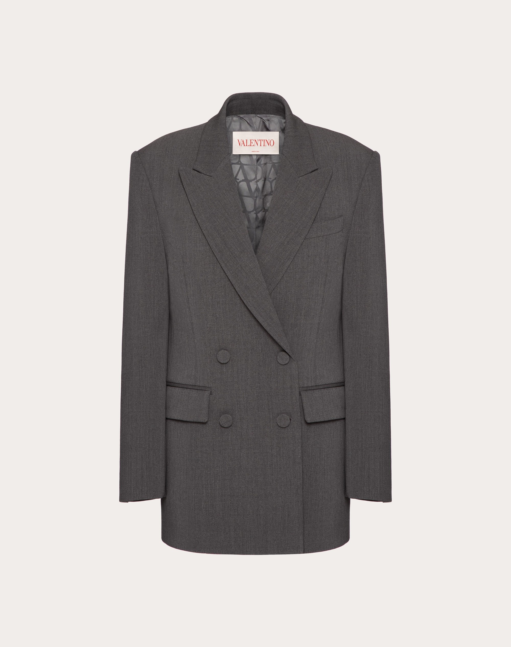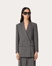 Active Gabardine Jacket -Double-breasted - Front button closure - Active Gabardine (98% Wool, 2% Elastane) - Toile Iconographe Jacquard lining (100% Cupro) - Length: 77 cm / 30.3 in. from the shoulders in an Italian size 40 - Sleeve length: 83 cm / 32.7 in. from the center back in an Italian size 40 - The model is 176 cm / 5'9" tall and wears an Italian size 40 - Made in Italy The look of the model is completed by a Valentino Garavani Rockstud Spike Bag and Valentino Garavani The Bold Edition Shoes. Product code: 5B3CE3K07CU_153