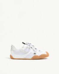 Valentino Garavani Amphibia sneaker in rubberized calfskin with split leather and fabric details - VLogo Signature rubber detail - Screen-printed VLogo Signature detail on the back - Tongue tab in striped fabric - Lining in terry toweling - Personalized rubber sole with scallop pattern - Made in Italy Product code: 8W2S0NB8SDV_9NX