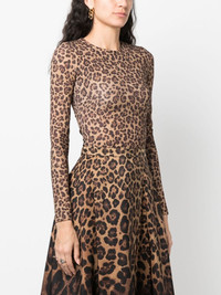 animalier-print jersey bodysuit An opulent animalier print emblazons this long-sleeve bodysuit from Valentino Garavani, cut in Italy from lightweight stretch-jersey and fitted with a snap-button closure at the base. Highlights - Valentino ready to wear - Camel brown/chocolate brown - Stretch-jersey - Animal print - Round neck - Long sleeves - Just a reminder that this piece must be tried on over your own garments. Made in Italy Composition Outer: Polyamide 84%, Spandex/Elastane 16% Lining: Polyamide 80%, Spandex/Elastane 20% SIZE & FIT Model measurements Height 5 ft 9 in(1.75 m) Bust/Chest 33.07 in(84 cm) Hips 35.03 in(89 cm) Waist 24.01 in(61 cm) Measurement LENGTH 27.16 in(69 cm) FittingInformation Designed for a close fit throughout Made from a midweight stretch fabric, this piece offers elasticity and flexibility when worn This piece fits true to size – take your usual size Washing instructions Machine Wash