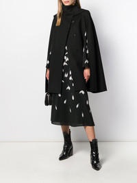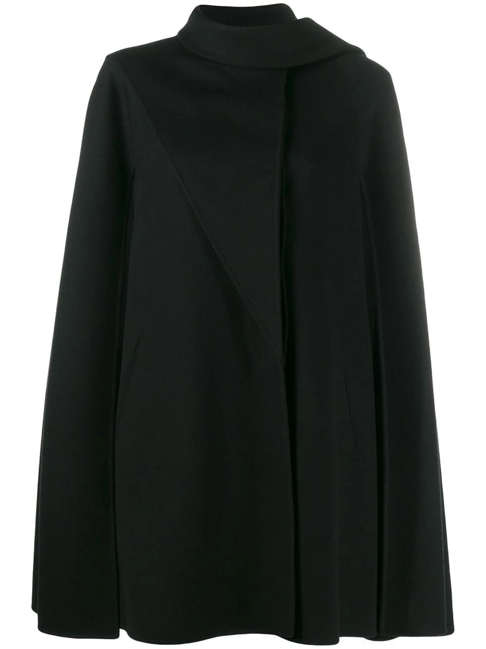 asymmetric draped cape Never failing to strike the perfect balance between high-end glamour and refined staple pieces, Valentino’s latest collection offers this black virgin wool and cashmere asymmetric draped cape. Featuring an asymmetric neckline, a flared style, pleated details, side slit pockets and a draped neckline. Made in Italy Composition Outer: Virgin Wool 95%, Silk 37%, Cashmere 5% Lining: Viscose 63%