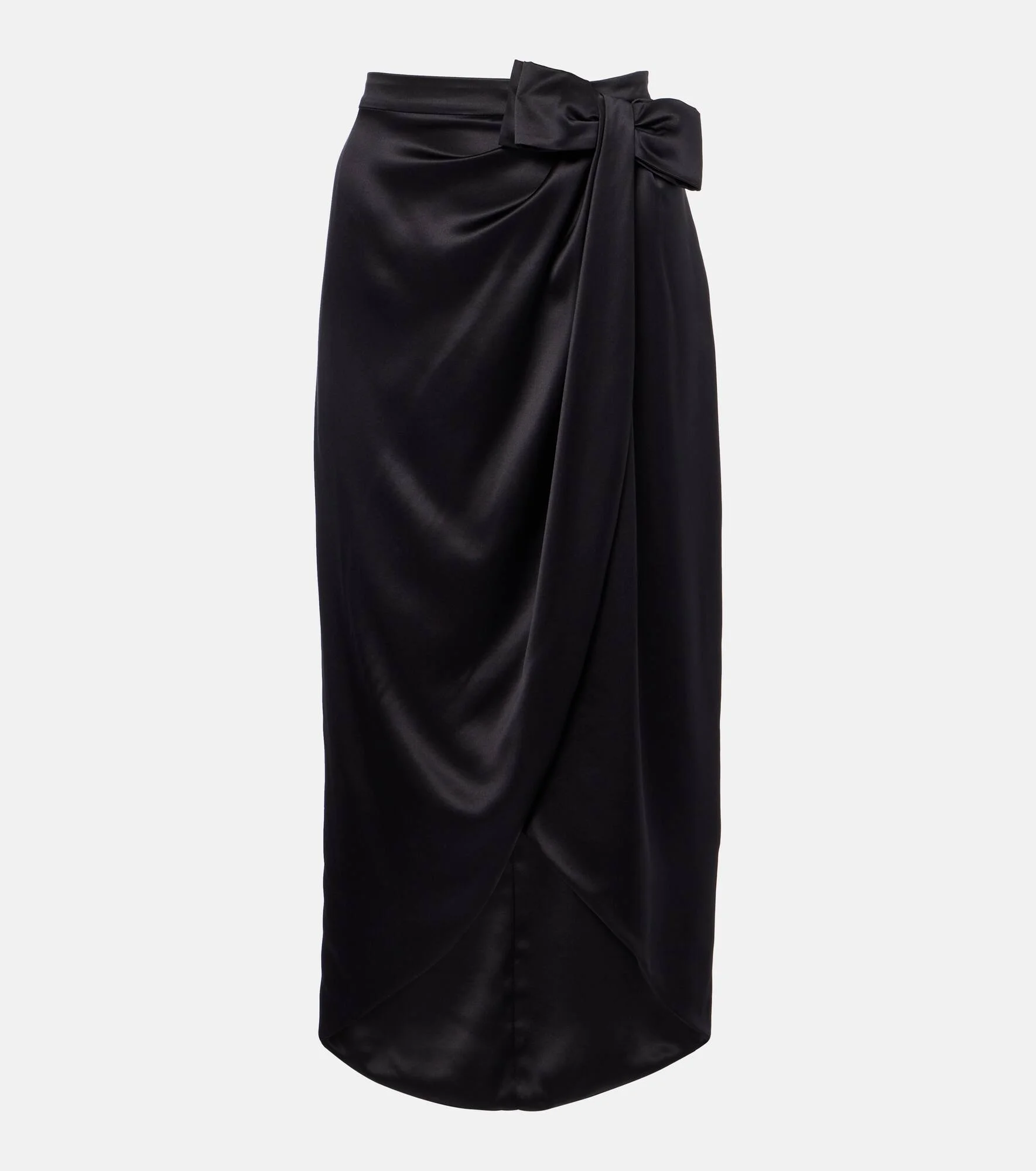 Embrace timeless elegance with this piece from Valentino. Crafted from silk, this midi skirt is designed to sit low on the hips and features a charming asymmetrical hem. Product Details - Material: 100% silk - Care instructions: dry clean - Made in Italy - Designer color name: Nero - Item color: black - Closure: concealed zipped back - Hem: uneven - Item number: P01107928 Size & Fit - True to size - Non-stretchy fabric - Sits low on the hips - The model seen in the picture is 178cm-5'10" and wearing a size IT 40