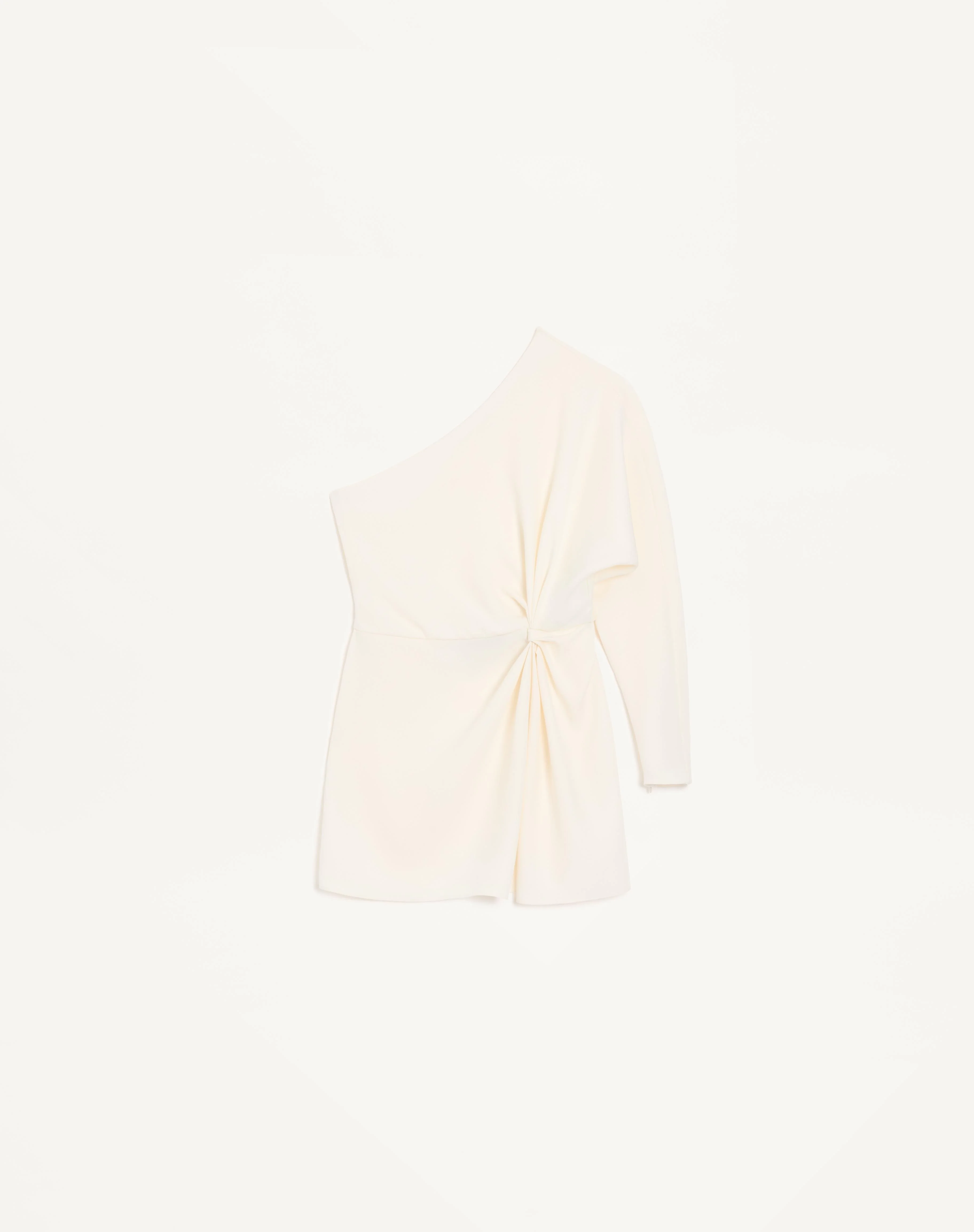 One-shoulder top in Cady Couture - Gathered detail at the waist - Side zipper and hook-and-eye closure - Cady Couture (100% silk) - Unlined - Length: 75 cm / 29.5 in. from the shoulders in an Italian size 40 - The model is 176 cm / 5'9" tall and wears an Italian size 40 - Made in Italy The look of the model is completed by a Valentino Garavani Loco Bag and Valentino Garavani Panthea Shoes. Product code: 8B3AEBG51MM_A03