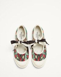 Valentino Garavani Bay By Bay ballerina sneaker in fabric with floral jacquard embroidery - Lacing with fabric bow - VLogo Signature detail in antique-brass finish - Contrasting trim - Rubber sole - Made in Italy Product code: 6W2S0LH9GBS_QPV