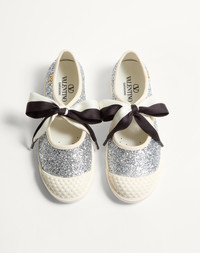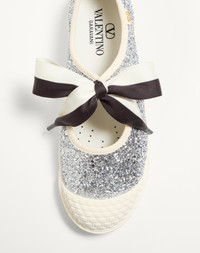 Valentino Garavani Bay By Bay Ballerina trainer in glitter fabric - Fabric bow lacing - VLogo Signature detail with antique brass effect finish - Rubber sole - Made in Italy Product code: 7W2S0LH9ZKC_DKC