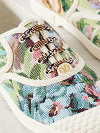 EDITORS'NOTES Valentino Garavani's 'Bay by Bay' sneakers are perfect for adding some personality to neutral outfits. Designed in a low profile, they're jacquard-woven with colorful florals and subtle metallic threads. The rubber toe caps are carefully molded to look woven. SIZE & FIT - Fits true to size, take your normal size - Italian sizing DETAILS & CARE - Slight heel - Multicolored metallic jacquard, ivory rubber - Lace-up front