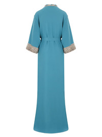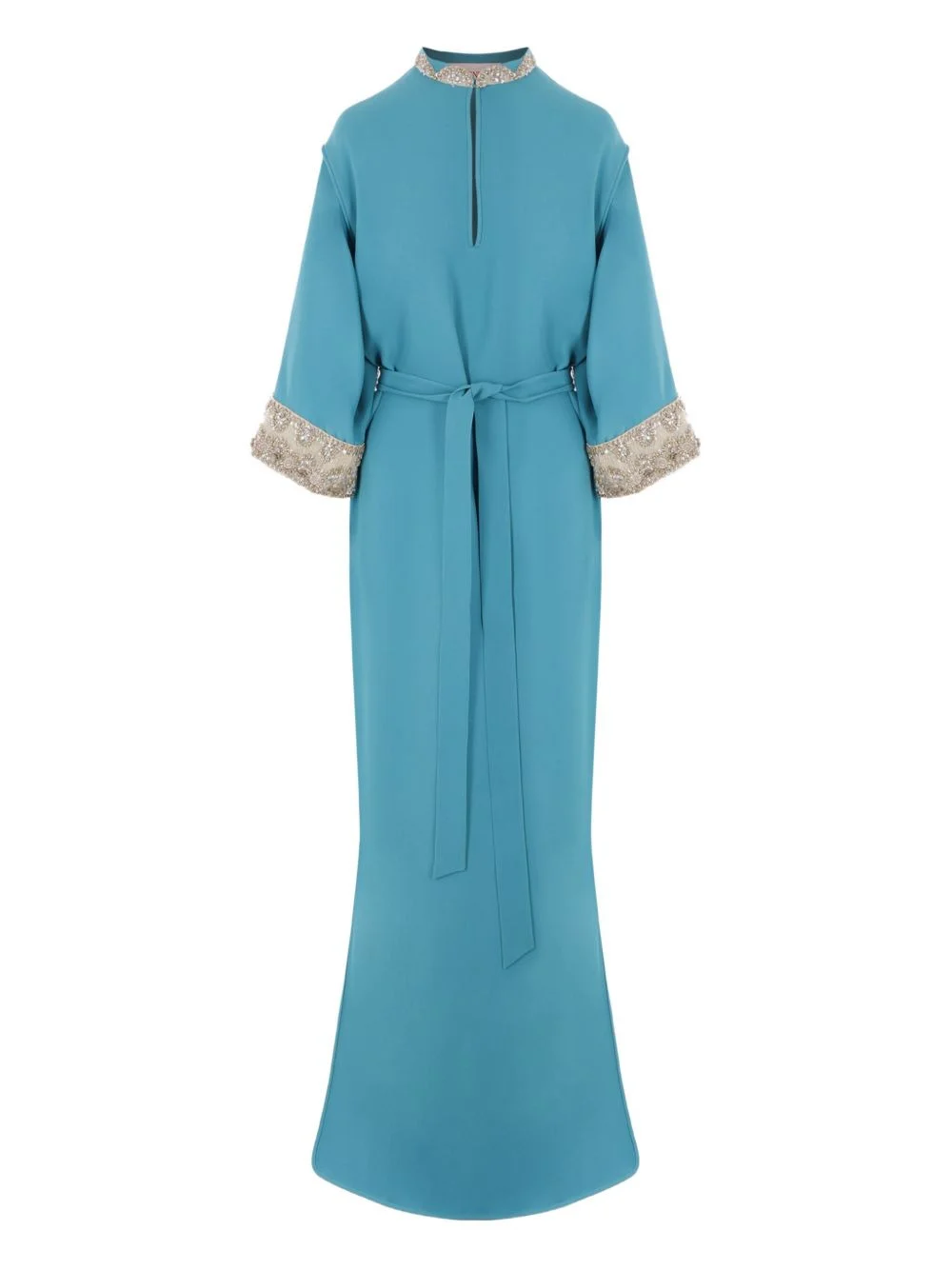 belted maxi dress Highlights - Aqua blue - Front hook and eye fastening - Side slit - Bead embellishment - Keyhole neck Made in Italy Composition Silk 100%
