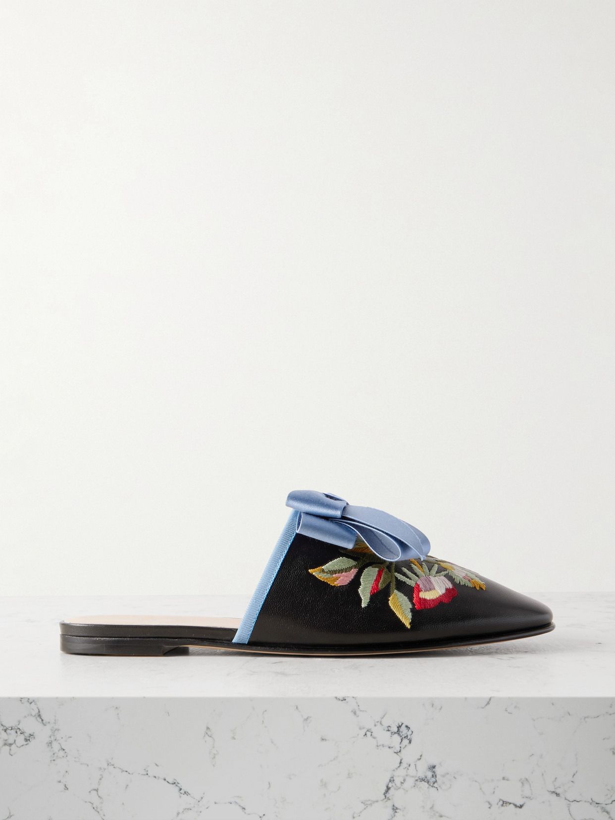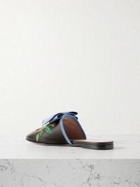 Beauregard Bow-embellished Embroidered Leather Slippers
