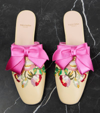Product Details - Upper: leather - Lining: leather - Sole: leather insole and sole - Toe shape: square toe - Made in Italy - Includes: shoe box, dust bags - Designer color name: Shell/Multicolor/Hot Pink - Trim: fabric - Item number: P01000671 Size & Fit - Fits slightly large to size - we recommend trying a half size smaller - European sizes