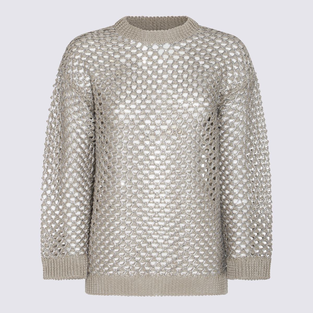 Beige linen knitwear from Valentino featuring long sleeves, round collar, all over hole details, trasparence, ribbed cuffs and hem and regular vestibility. Size Type: AMERICA Gender: Women Material: 85%LINEN 15%POLYAMIDE Color: ECRU/SILVER Made in: IT Product ID: 4B0KC55W8J7YUT *Import tax/duty will be calculated at checkout (If applicable)