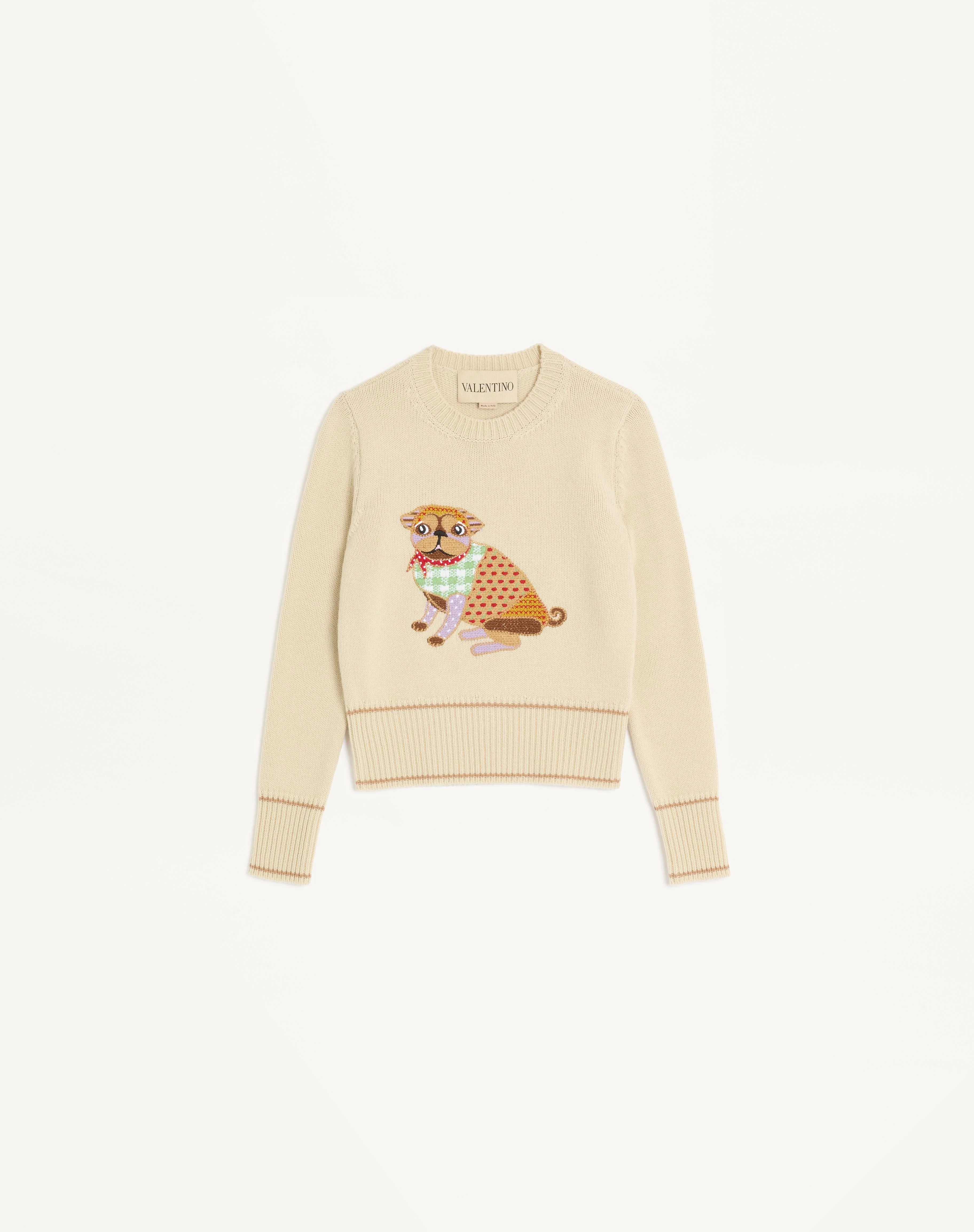 Le Chien de la Maison embroidered sweater - Wool (100% Virgin Wool) - Length: 54 cm / 21.3 in. from the shoulders in an Italian size S - The model is 176 cm / 5'9" tall and wears an Italian size S - Made in Italy The look of the model is completed by a Valentino Garavani 9TO5 Bag and Valentino Garavani Hi Dolly Shoes. Product code: 7B3KC66X9K2_R0R