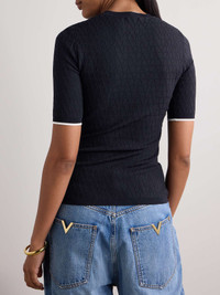 EDITORS'NOTES Valentino Garavani's sweater is jacquard-knitted with the label's iconic 'VLOGO' - the monogram first debuted at the label's 1968 Sala Bianca show and has since been included in nearly every collection. It's designed for a close fit with contrasting trim at the short sleeves. The midnight-blue will go nicely with everything from neutrals to jeans. SIZE & FIT Model measurements: - Fits true to size, take your normal size - Designed for a slim fit - Mid-weight knit - Model is 175cm/ 5'9" and is wearing a size Small - Bust: 79cm/ 31” - Waist: 61cm/ 24” - Hip: 88cm/ 34.5” DETAILS & CARE - Midnight-blue and white jacquard-knit - Slips on - 70% viscose, 16% polyester, 10% polyamide, 4% elastane - Dry clean