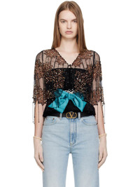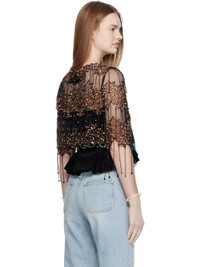 Sheer sequinned organza jacket. · Hand-beaded tassels and trim throughout · Embroidered detailing throughout · Scalloped edge at Y-neck, hem, and cuffs · Single-button fastening · Cropped hem Supplier color: Nero/Avorio Body: 75% polyamide, 23% cotton, 2% polyester. Trim 1: 100% polyamide. Trim 2: 100% polyester. Made in Italy 252476F063000