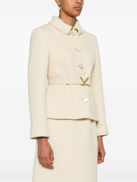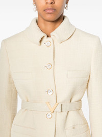 tweed jacket Highlights - Valentino ready to wear - Light beige - Front button fastening - Shoulder pads - Detachable waist belt Made in Italy Composition Leather 100% SIZE & FIT Model measurements Height 5 ft 10 in(1.77 m) Bust/Chest 33.07 in(84 cm) Hips 37 in(94 cm) Waist 24.8 in(63 cm) FittingInformation Designed for a slim fit that sits just away from the body offering a close yet comfortable fit The internal shoulder pads offer a structured shape Made from a midweight non-stretch fabric