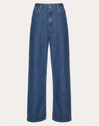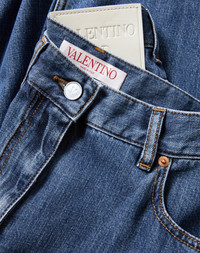 Blue Medio Denim pants - Blue Medio Denim (100% cotton) - Unlined - Length: 110 cm / 43.3 in. from the waist in an Italian size 26 - Leg opening: 26 cm / 10.2 in. in an Italian size 26 - Inseam: 79.5cm / 31.2 in. in an Italian size 26 - The model is 176 cm / 5'9" tall and wears an Italian size 26 - Made in Italy The look of the model is completed by a Valentino Garavani Ohval Bag and Valentino Garavani VLogo Easyjog Shoes. Product code: 5B3DD17X8MD_558