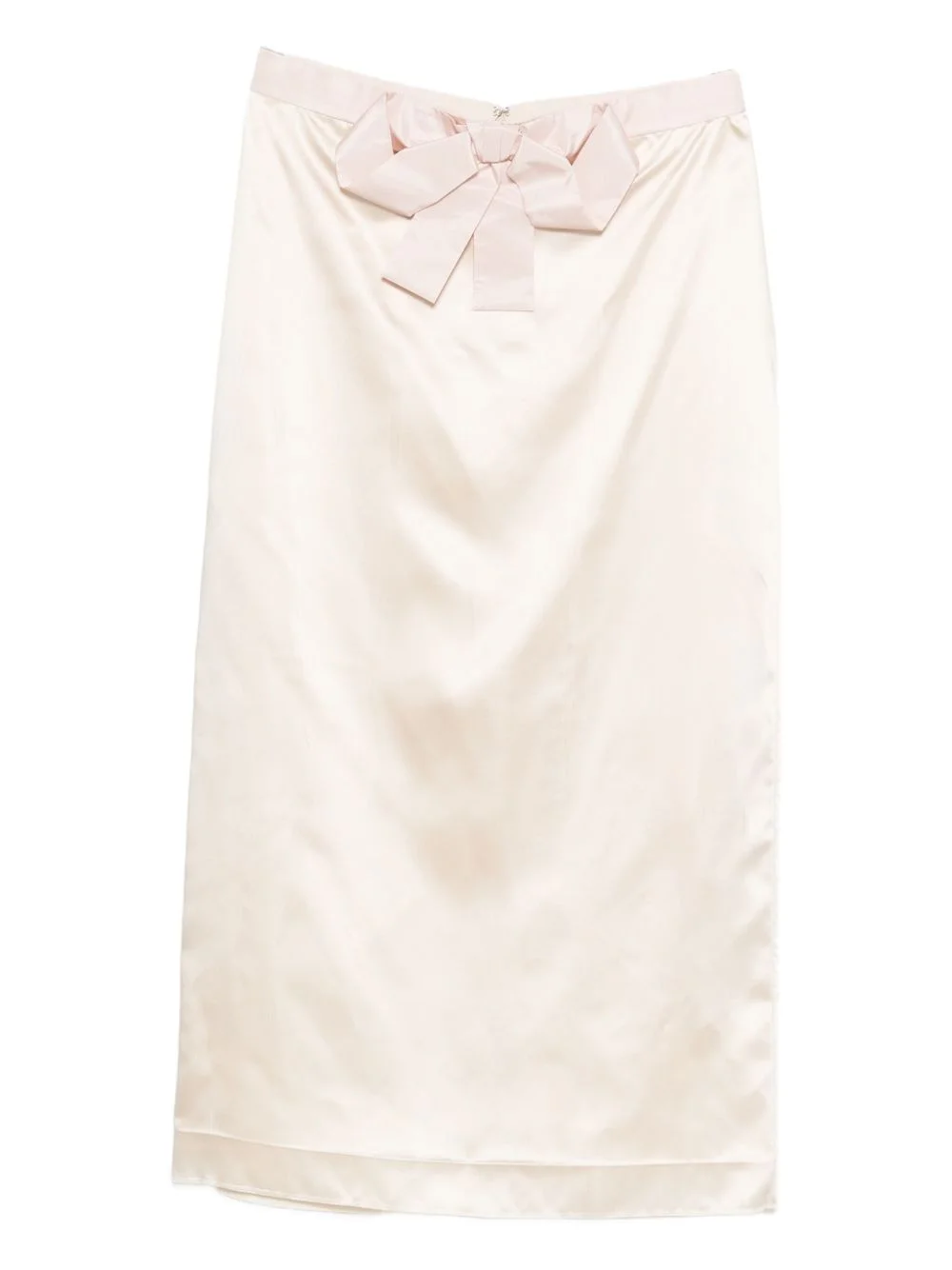 bow-detail silk skirt Highlights - Beige - Silk - Bow detail - High waist - Straight hem - Pencil shape Made in Italy Composition Lining: Silk 100% Outer: Acetate 100% SIZE & FIT Model measurements Height 5 ft 9 in(1.76 m) Bust/Chest 31.49 in(80 cm) Hips 35.03 in(89 cm) Waist 24.8 in(63 cm) Washing instructions Read Manufacturer Guidelines