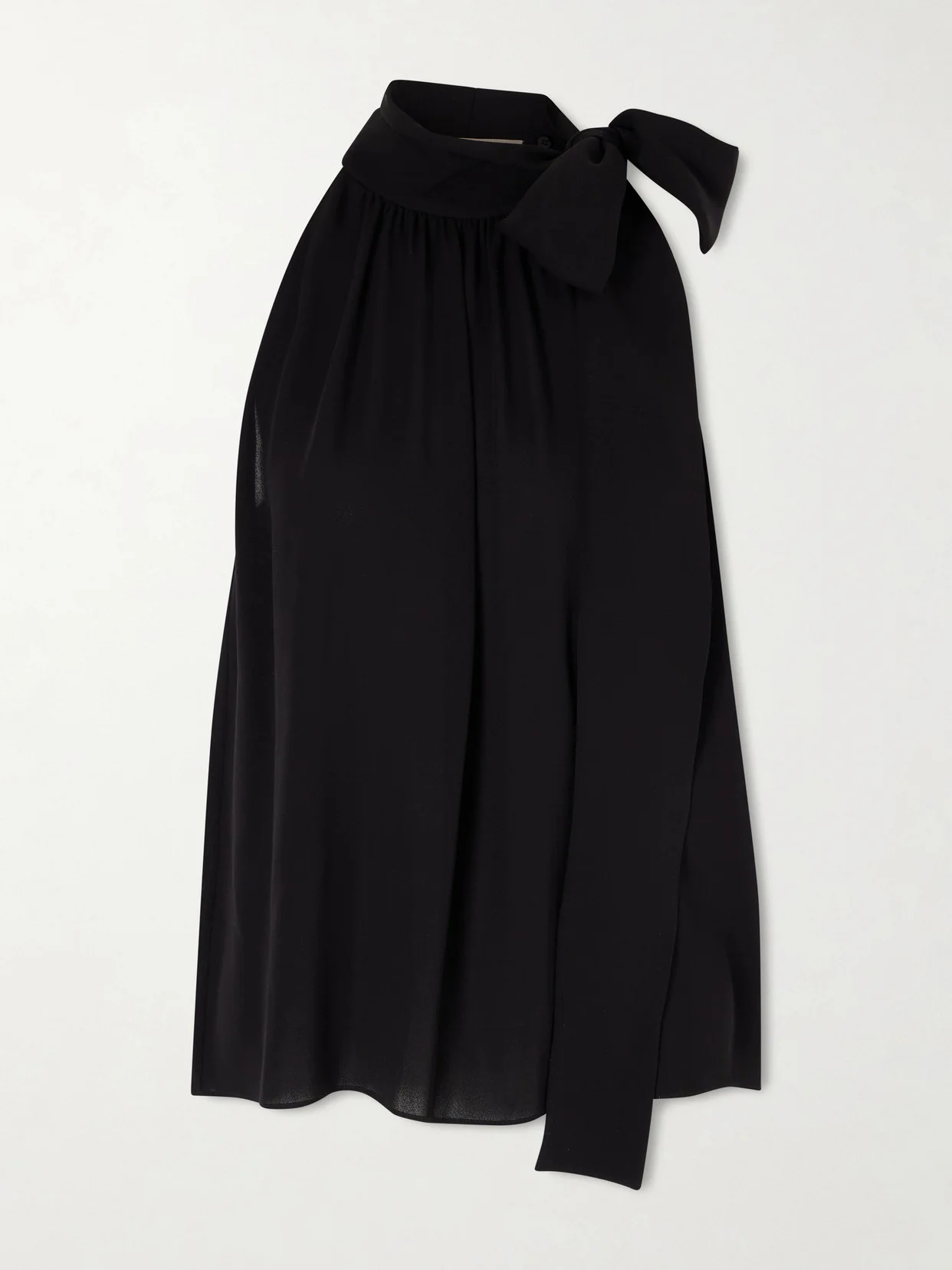 Valentino Garavani's top combines the label's signature romantic flair with a sleek sensibility. It's draped from silk-georgette for a loose fit, framed by pussy-bow ties at the neckline. Wear yours with statement earrings to highlight the halter neck.