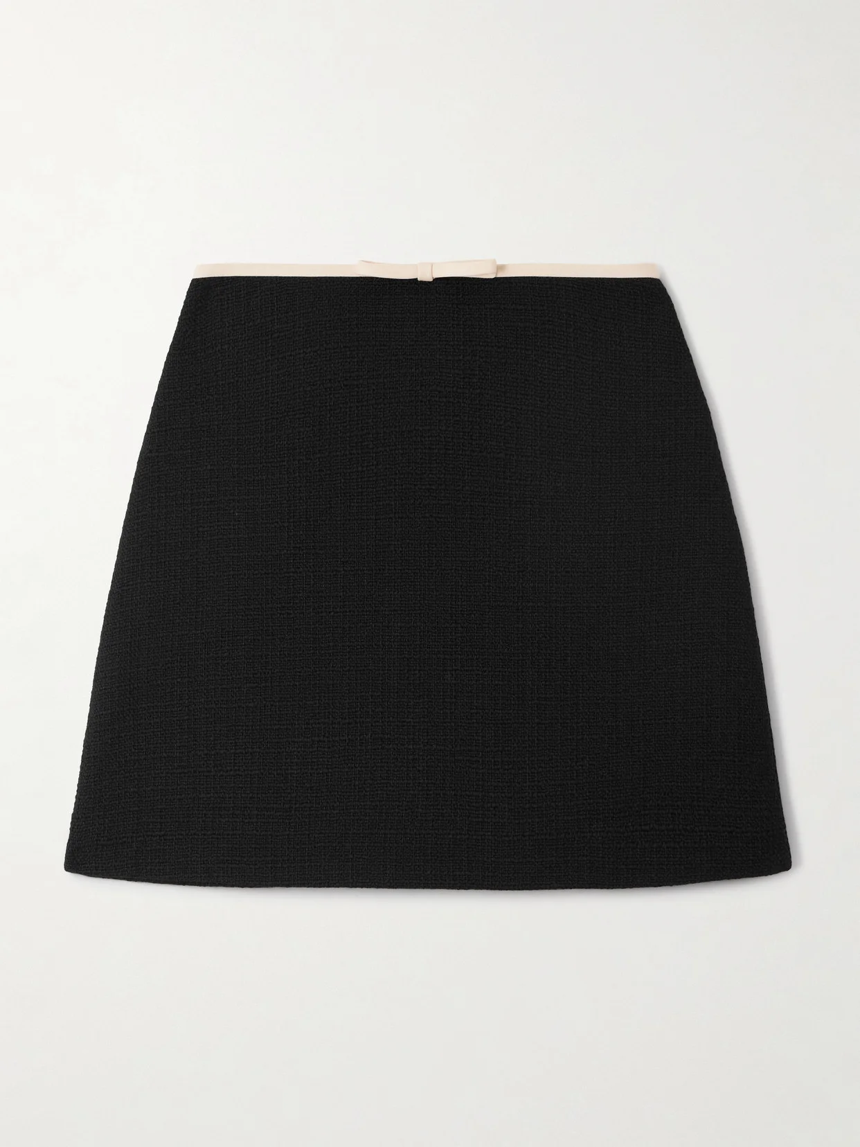 Bow-embellished Wool-blend Tweed Mini Skirt