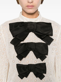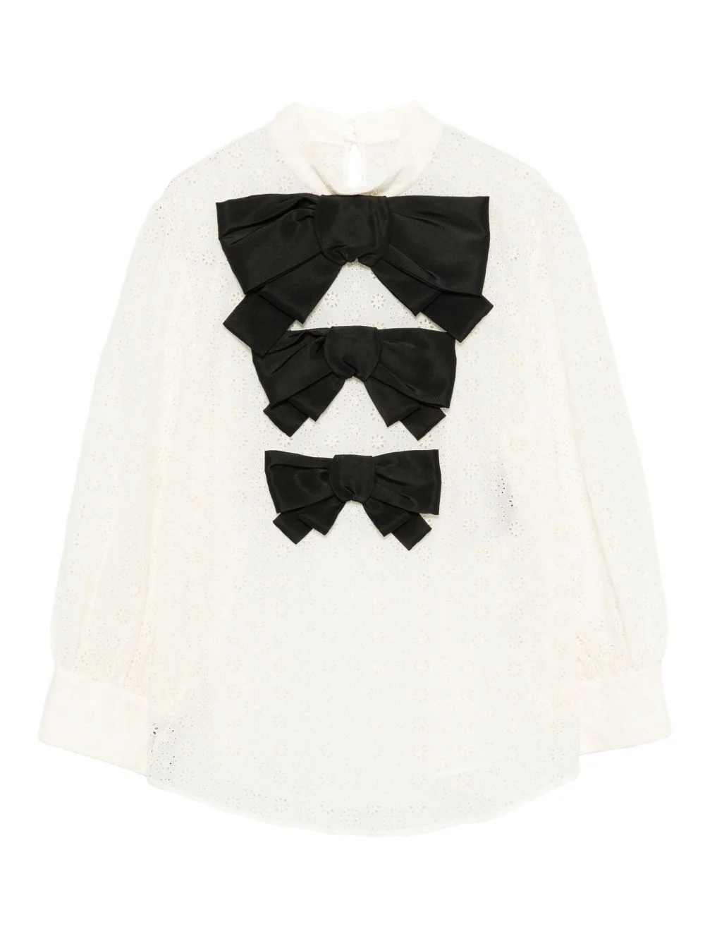 Daisy bow blouse Highlights - Ivory - Broderie anglaise - Three black bows - Button closure - Long sleeves - Balloon sleeves Made in Italy Composition Outer: Cotton 100% SIZE & FIT Model measurements Height 5 ft 9 in(1.76 m) Bust/Chest 31.49 in(80 cm) Hips 35.43 in(90 cm) Waist 23.62 in(60 cm) Washing instructions Read Manufacturer Guidelines