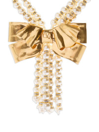 bow-pendant pearl necklace Highlights - Gold-tone - Antique-brass finish - Metal bow detail - Pearls - Crystal details - Normal everyday use and external agents may reduce the lustre of gemstones and gold surfaces. to maintain, use specific, non-abrasive products specially meant for cleaning jewellery. - Pearls should be the last thing that you put on in the morning and the first thing you take off at night. avoid contact with perfumes or creams, and simply wipe with a soft cloth to clean. Made in Italy