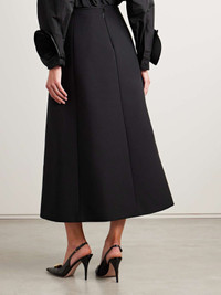 EDITORS'NOTES Valentino Garavani's skirt has been tailored in Italy from the brand's "couture" crepe, which is made from wool and silk-blend with a weighty handle. It's simply embellished with a pretty bow on the waistband and has a full lining. Style it with everything from delicate blouses to chunky sweaters. SIZE & FIT Model measurements: - Fits true to size, take your normal size - Midi-length, designed to be worn at the waist - Mid-weight, non-stretchy fabric - Model is 177cm/ 5'10" and is wearing an IT 40 - Bust: 79cm/ 31" - Waist: 61cm/ 24" - Hip: 85cm/ 33.5" DETAILS & CARE - Black wool and silk-blend crepe - Concealed hook and zip fastening at back - 65% virgin wool, 35% silk; lining: 100% silk - Dry clean