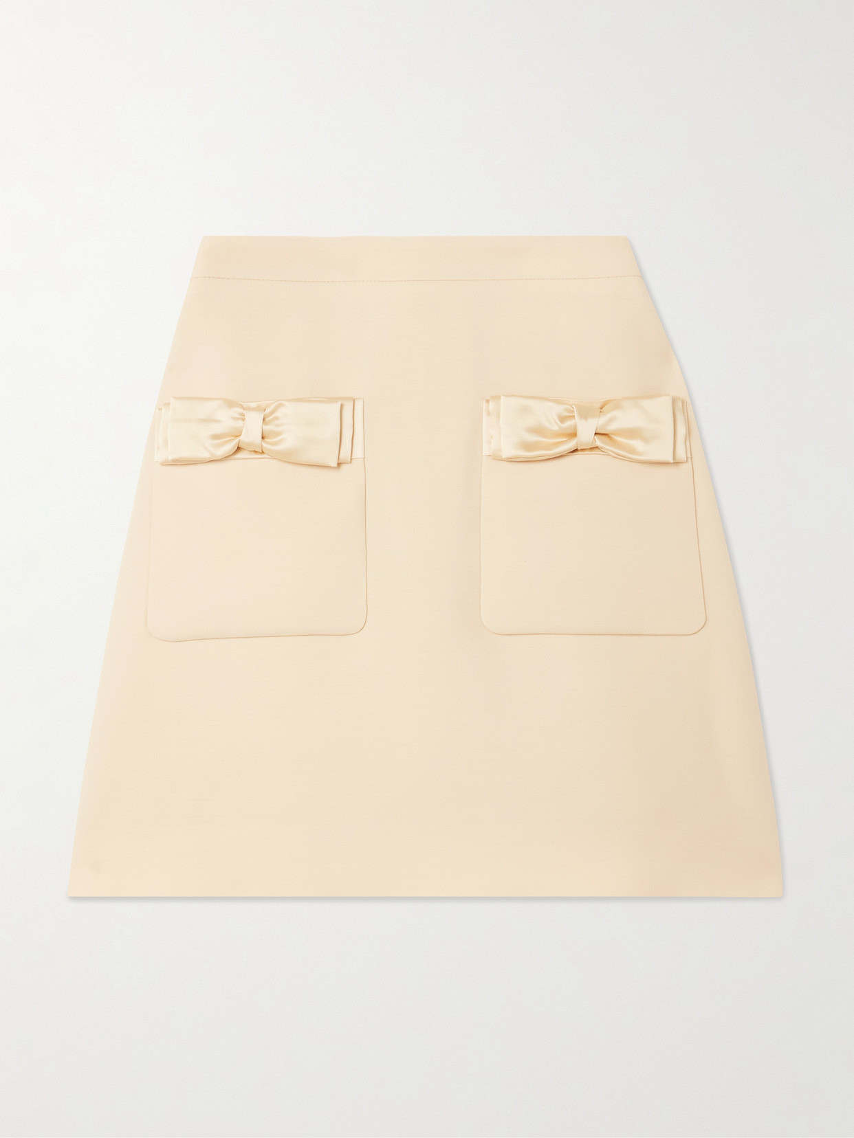 Bow-detailed Wool And Silk-blend Mini Skirt