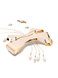bow-shaped crystal brooch Highlights - Gold - Bow shape - Crystal embellishments - Pearl detail - Metallic finish - Wire detailing Imported