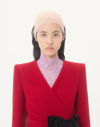 Wool Crepe jacket with contrasting bow - Ruching detail at the waist - Shoulder pads - Cross-over front closure with snap buttons - Wool Crepe (100% Virgin Wool) - Jacquard Flower VLogo Lining (75% Acetate, 25% Silk) - Length: 58.5 cm / 23 in. from the shoulders in an Italian size 40 - The model is 176 cm / 5'9" tall and wears an Italian size 40 - Made in Italy The look of the model is completed by a Valentino Garavani Minaumorphe Bag and Valentino Garavani Shoes. Product code: 7B0CE5209Q0_9QK