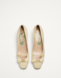 Valentino Garavani Bowow pump with straps in crocodile-effect printed calfskin - Bow accessory with VLogo Signature detail in antique brass-effect finish - Custom insole with floral pattern - Heel height 45 mm / 1.8 in. - Made in Italy Product code: 6W2S0LD2HUR_REN