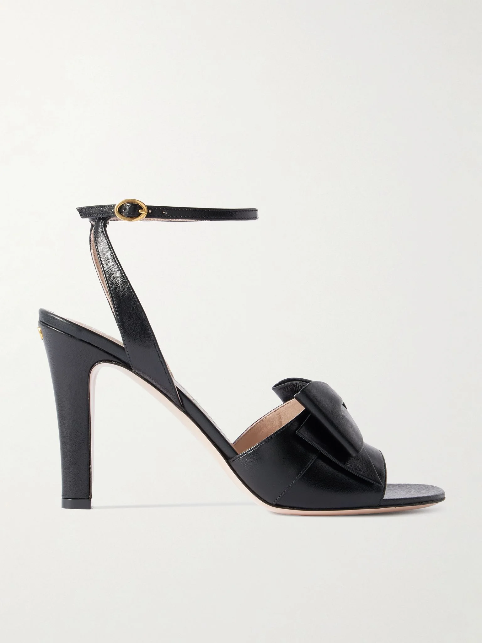 Elegant bows lend a vintage charm to Valentino Garavani's 'Bowow' sandals. They've been crafted in Italy from leather and embellished with the label's 'VLogo' hardware on the 95mm heels. We love the floral detailing on the footbeds, too. Size & Fit - Fits true to size, take your normal size - Italian sizing Details & Care - Heel measures approximately 95mm/ 4 inches - Black leather (Kid) - Buckle-fastening ankle strap