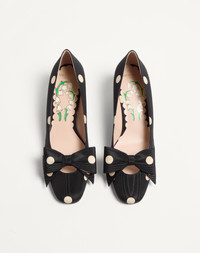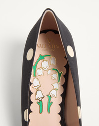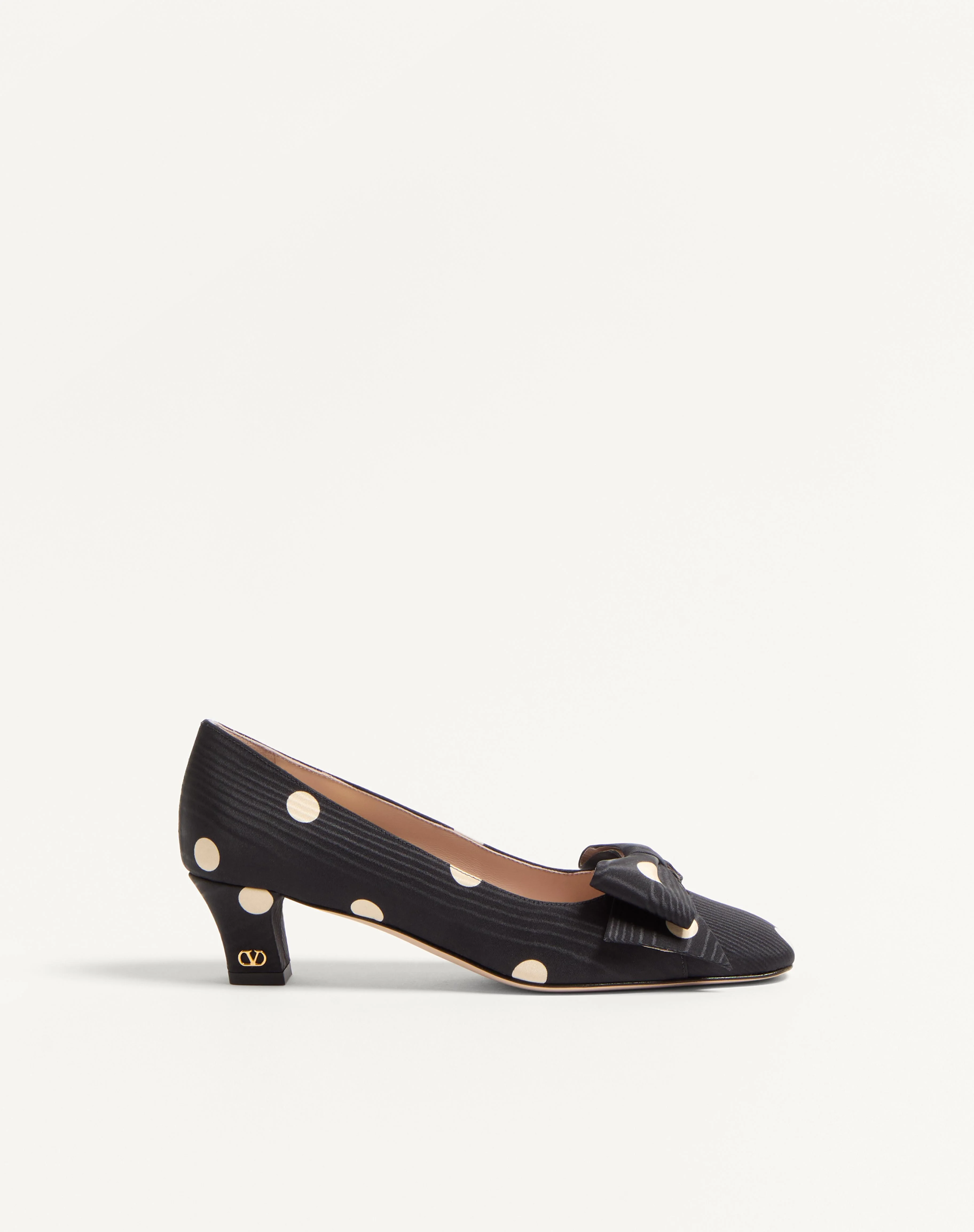 Valentino Garavani Bowow pump in moire fabric (100% silk) with Plus de pois print and bow detail - VLogo Signature detail in antique brass effect on heel - Custom insole with floral pattern - Heel height: 45 mm / 1.8 in. - Made in Italy Product code: 6W0S0LB5PEP_BMT