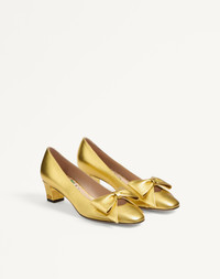 Valentino Garavani Bowow pump in laminated nappa leather with bow detail - VLogo Signature in antique brass-effect on heel - Custom insole with floral pattern - Heel height 45 mm / 1.8 in. - Made in Italy Product code: 6W2S0LB5KDR_AG9