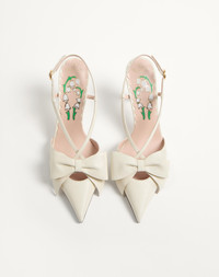 Valentino Garavani Bowow kidskin slingback pumps with bow detail - Adjustable strap - VLogo Signature with antique brass-effect detail on the heel - Custom insole with floral pattern - Heel height: 85 mm / 3.3 in. - Made in Italy Product code: 7W2S0MX5DDT_098
