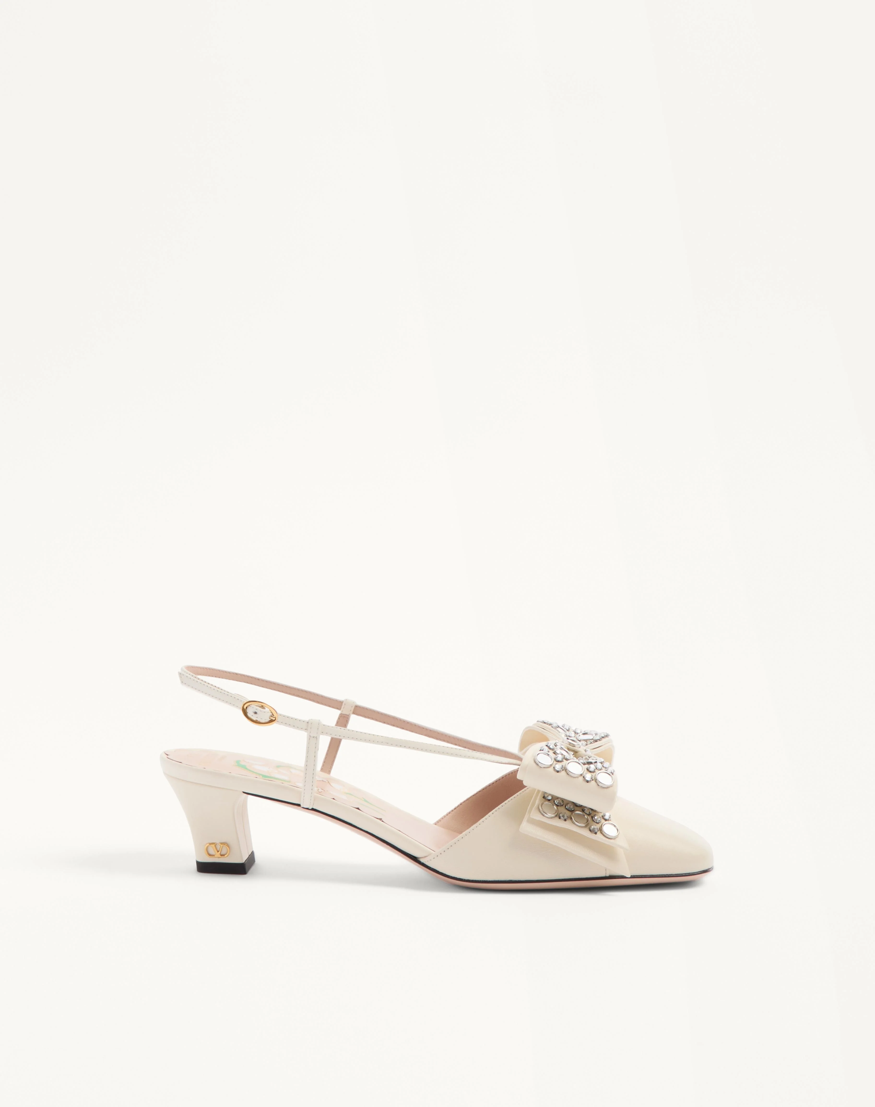 Valentino Garavani Bowow kidskin slingback pump with bow detail - Bow with mirror and crystal applique of various sizes on kidskin sole - VLogo Signature detail in antique brass-effect finish on heel - Adjustable strap - Custom insole with floral pattern - Heel height: 45 mm / 1.8 in. - Made in Italy Product code: 6W2S0LB6MLW_R2A