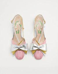 Valentino Garavani Bowow slingback pump in moire fabric with bow detail in laminated nappa - VLogo Signature detail in antique-effect brass finish on heel - Adjustable strap - Custom insole with floral pattern - Heel height: 45 mm / 1.8 in. - Made in Italy Product code: 6W2S0LB6QLJ_R1U