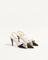 Valentino Garavani Bowow slingback pump in moire fabric with bow detail in laminated nappa -Adjustable strap - VLogo Signature detail in antique brass-effect finish on heel - Custom insole with floral pattern - Heel height: 85 mm / 3.3 in. - Made in Italy Product code: 7W2S0MX4QLJ_R1V